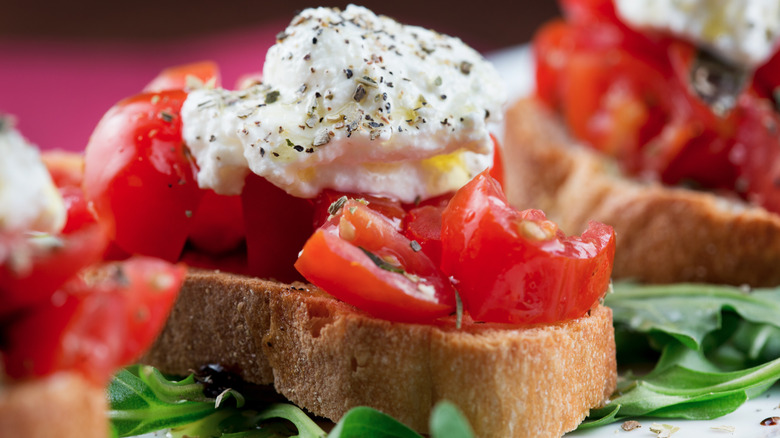 Now, die-hard traditional bruschetta lovers might look down on anyone trying to add cheese to this beloved appetizer. While they'd be right to do so when it comes to harsher cheeses, like cheddar or Swiss, ricotta is light enough to get away with adding. More than that, it brings a new dimension of flavor to the dish without undoing everything that's already great about it.