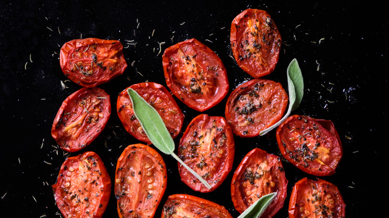 Roasted tomatoes have a lovely smokiness to them which adds a certain depth to a wide range of recipes. With that in mind, if you're willing to stray from the raw tomato rule for bruschetta, roasted tomatoes can lend their unique flavor to this appetizer, as well — especially when paired with balsamic vinegar, like in a roasted balsamic bruschetta recipe.