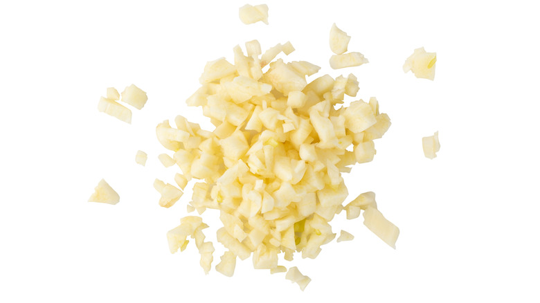 Plain tomatoes are quite good on their own, but their flavor seems to become turbocharged once you add garlic. Consequently, you should never forget this ingredient when making bruschetta. In fact, garlic is so important to bruschetta that if you're ever in doubt as to how much garlic to add, it's best to err on the side of more. For the best results, you can mince garlic and mix it with the tomatoes themselves. Although many traditional recipes call for the garlic to be rubbed onto the bread, this step ensures the flavor permeates through every bite.