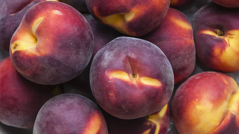 While sweet peaches can be peachy keen, their flavor profile may not adhere to your taste preferences if you are a Granny Smith girly or cranberry kind of guy. When it comes to fruit, perhaps you prefer it to be on the tart side. If this sounds like you, you're in luck. There is a certain type that will satisfy your sour tooth and help balance out the sweetness of the other ingredients in a classic peach cobbler — a red-fleshed peach.