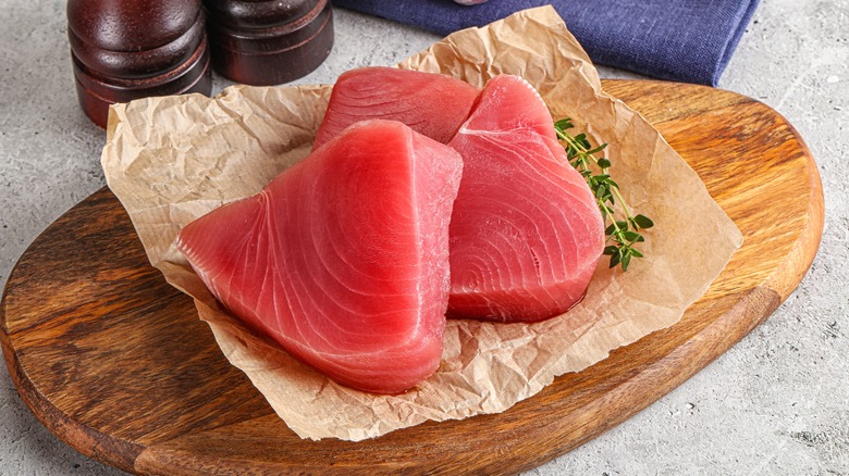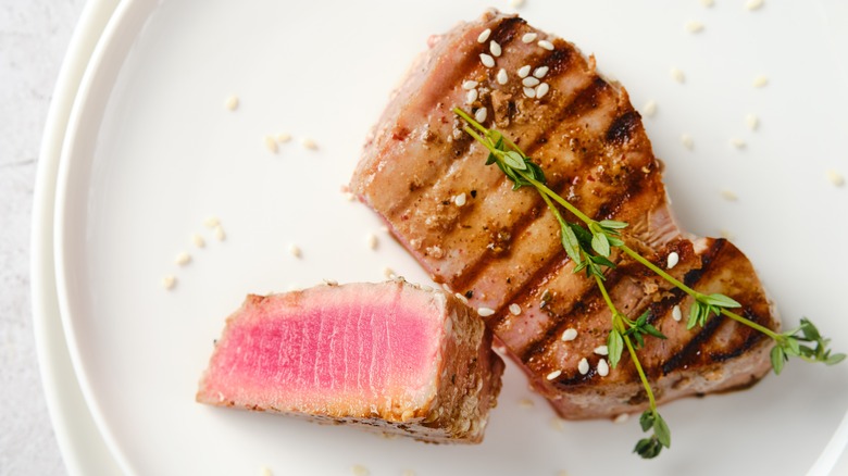 But there's another way to highlight what tuna fish has to offer. Grilled tuna steaks — a staple of the Polynesian islands — encompass the tastiest flavor profile for fresh-caught tuna. Also eaten raw in sushi or poisson cru, cuts of fresh tuna steak open up a number of possibilities for enjoying tuna fish that doesn't come out of a can. (If you're now wondering what to do with those cans of tuna in your pantry, check out the best canned tuna tips from celebrity chefs.)