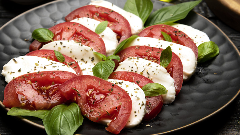 Just like how you want to keep tuna steak simple and not overdo it with herbs and spices, don't throw a shadow over your perfectly grilled fish by swamping it with heavy sides. Grilled tuna pairs nicely with side dishes like rice, sautéed vegetables, and green salads, since each component supports tuna's brightness. Andrew Zimmern suggests serving tomatoes and mozzarella — offering light acidity and sweetness, along with the cheese's rich creaminess — as a wonderful combination with grilled tuna steaks.