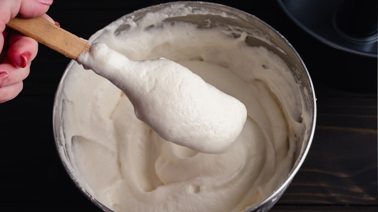 But how do you know when your egg whites just airy enough? Senouci notes that you should "beat [the] egg whites until they form stiff peaks, but are still glossy." Yohann Le Bescond shares that egg whites beaten to the stiff peak stage "should hold [their] shape when turned upside down."