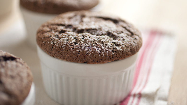 The egg white trick to take chocolate soufflés to the next level is more simple than you might think, and it's easy to employ — even if you consider yourself to be a beginner baker. The secret is adding a bit of powdered sugar to your egg whites to help stabilize them. You'll want to leave the granulated sugar out of the equation here. The powdered sugar has the perfect degree of sweetness and will more readily dissolve into the egg whites when you start whipping them. Once the sugar dissolves, it will take up moisture in the egg whites and help solidify the whites a little more. Moreover, you'll want to avoid granulated sugar in your egg whites because it could make the meringues quite gritty.