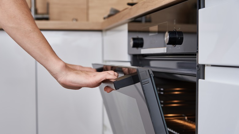 Being mindful of how long your soufflé is in the oven is critical — especially considering that you can't open the oven for the first half an hour or so of baking. You'll have to rely a lot on looking at the texture of the soufflé from outside of the oven to determine when it's time to pull it. If you take it out too early, it will be mushy and collapse. But if you give it even a few minutes too long, you may end up with a dry, cracked soufflé that looks anything but appetizing.