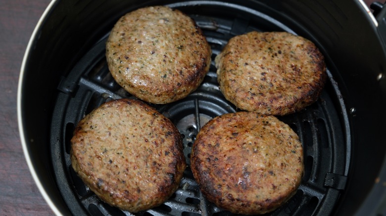 Whether it's bad weather or a lack of time keeping you from the grill, you can still keep burgers on the menu, even if they're frozen, thanks to your air fryer. There are certainly some foods that you should never cook in the air fryer, but a frozen burger isn't one of them. This handy gadget, when used correctly, will deliver delicious burgers in less time and with less mess.
