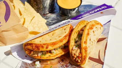 First tested last year alongside Taco Bell's chicken nuggets, the Cheesy Street Chalupas combine Quesalupa-inspired cheesy chalupa shells with street taco ingredients and the chain's premium proteins, according to a press release from the company. The new chalupas will feature a choice of slow-roasted cantina chicken or grilled, marinated steak and will be topped with onion and cilantro, along with a creamy jalapeño ranch sauce. The cheesy chalupa shells are stuffed with melted mozzarella and pepperjack cheeses and street taco-sized, with each order containing two chalupas. They will be available starting Thursday, July 18.