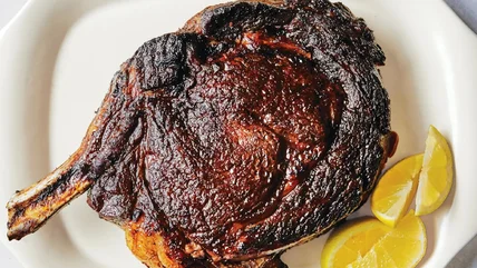 Most recipes for lacquered steaks call for a bone-in ribeye. The ribeye is a cut of steak known for its high marbling and tender chew. It's also a thicker cut that will stand up well to the heat of a grill. High marbling equates to a flavorful, umami-rich steak that will certainly benefit from the complementary umami notes presented by the fish sauce and soy sauce commonly found in a lacquer marinade.