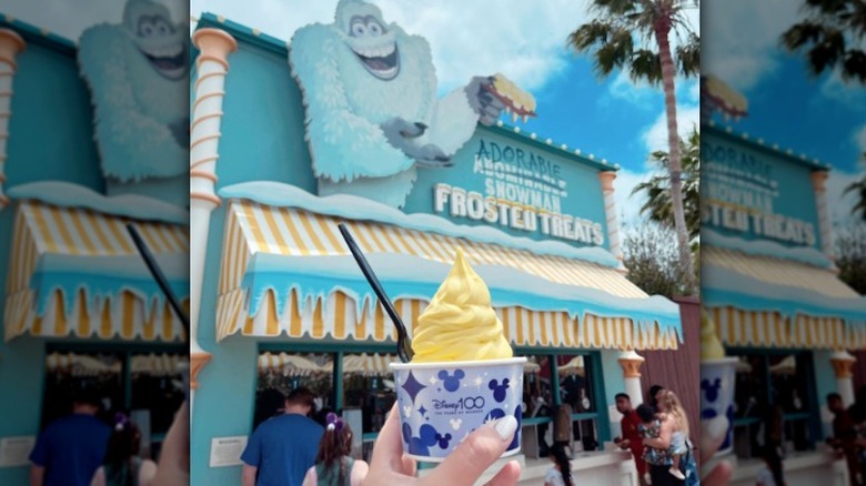 There may be a question if this sweet treat counts as ice cream as well, but hear me out. It's delicious and is ice cream adjacent, so I had to include on this list. Adorable Snowman Frosted Treats is located on the Pixar Pier and is a great place to visit after riding the Incredicoaster or Toy Story Mania. Especially on a hot day, you'll be ready for this frosted treat stand. Bringing unique flavors together, you can choose from lemon soft-serve topped with white chocolate, or for more of a kick, you can select the mango soft-serve with chamoy and chile-lime seasoning. Oh, and if that didn't already sound amazing enough, it is topped with diced mango.