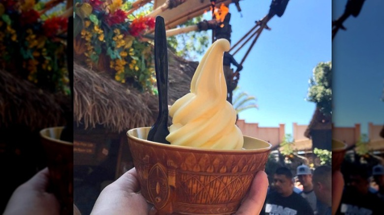 Controversial opinion: This next dessert isn't technically ice cream, but it still deserves a spot on this list. One of the few locations to purchase Dole Whip at Disneyland, Tiki Juice Bar is a stand that could be easily missed as one walks through park, but that would be a mistake. Dole Whip is a frozen soft-serve treat that is well known and loved at Disneyland. Bringing refreshing pineapple flavor, this dessert is dairy free, but you wouldn't know it based on its a perfect soft-serve texture. The menu features two items, including the traditional Dole Whip and a Dole Whip Float that has pineapple juice.