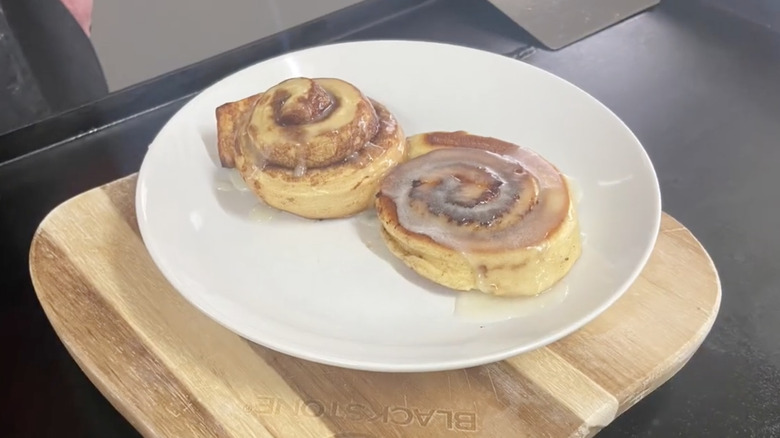 Blackstone griddles are known to expertly cook a number of things, from bacon and eggs to cakes, to smash burgers, and now, smash cinnamon rolls. The even heat quickly cooks cinnamon rolls in a way that will make you never want to return to the standard method. The griddle gives the treat a consistent, slightly crisp crust and leaves the airiness of the cinnamon roll's center intact.