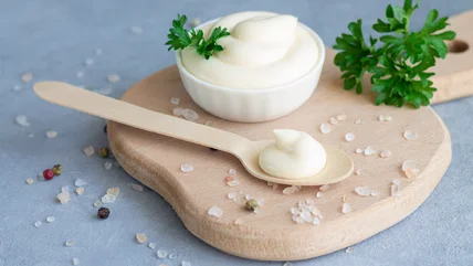 Mayo is a classic French sauce that is also an emulsification. Egg yolks, oil, and vinegar as well as seasonings such as salt, white pepper, and sometimes mustard are vigorously whisked together but not cooked. The resulting thick sauce is rich with a bit of tartness with seemingly boundless uses. It is, of course, a popular choice for sandwiches, but it is also used in salad dressings, used to hold together bound salads like potato, egg, and chicken, and is served as a dip for fries, cold chicken, and seafood. Mayo is also a base for other sauces, such as classic tartar sauce and some types of remoulade.