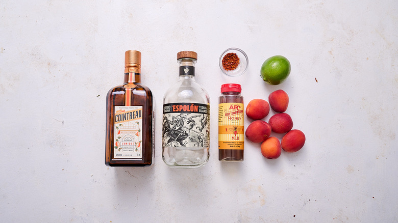 Gather the ingredients for hot honey apricot margaritas