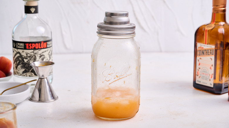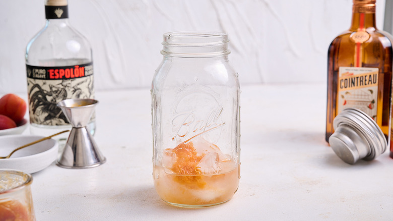 - Add the tequila, 1 ounce of apricot puree, Cointreau, lime juice, and hot honey.