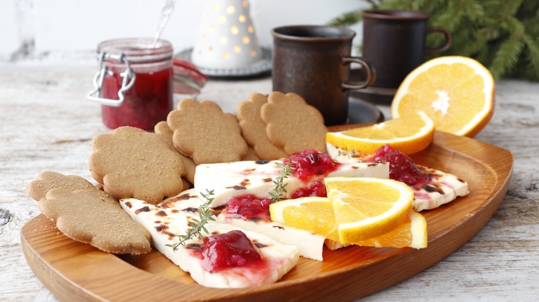 Think of your next cheese board as the empty chalkboard waiting for you to write down your cravings. While typical ingredients can help round out presentations of various cheeses, we'd like to encourage you to include some sweetness in your next platter of cheeses. Former cheese maker and self-described cheese monger Madelyn Varela asks cheese lovers to try eating cookies with cheese. On Instagram, Varela can be seen swiping creamy cheeses onto cookies and making open-faced cookie sandwiches with slices of harder cheeses. Though the pairing might sound surprising to some cheese aficionados, open-minded eaters will be well rewarded for their culinary curiosity.