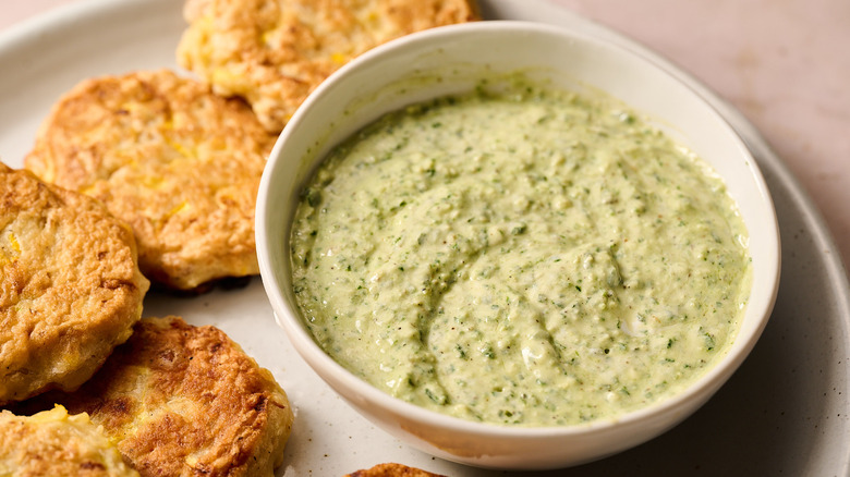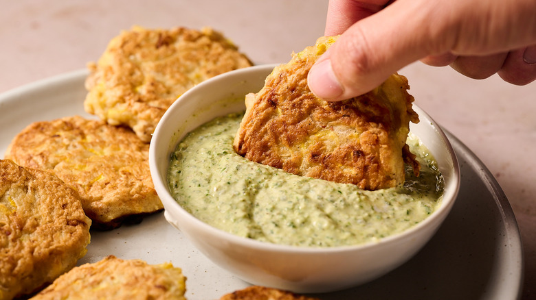 Summer Squash Fritters With Pesto Goat Cheese Dipping Sauce Recipe