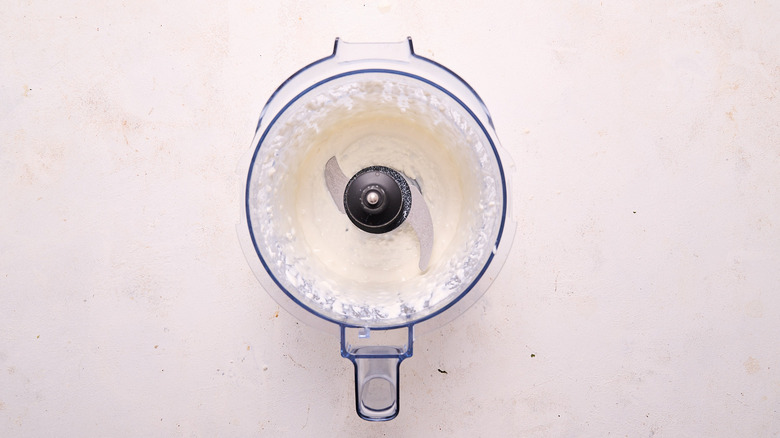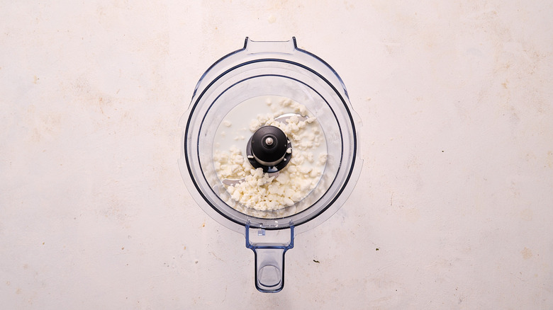 Step 7: Add the goat cheese and milk to a a processor