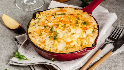Up the BBQ essence and make the most of your cookout leftovers by tossing in any leftover roasted sweet corn or chopped grilled vegetables you may have as well. You'll wind up with an incredibly savory, barbecue-sweet shepherd's pie that couldn't be easier to execute. Shake this recipe further and add some extra fiber and antioxidants by swapping regular mashed potatoes for sweet potatoes. Plus, sweet potato and smoky-sweet barbecue sauce will add even more depth of flavor to the dish. Add leftover bacon on top, throw in caramelized onions to complement the pork, or top with a layer of cheddar cheese to enhance this recipe even more.
