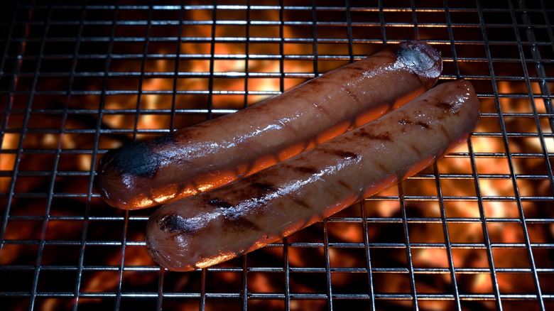 That's one gentle approach to preparing your hot dogs; the other involves giving them a lovely brown color and the fun of firing up the grill. Simply preheat the grill to medium-low heat and just treat the hot dogs like you're reheating them. Place them away from direct heat and cook for just 4-8 minutes if they are lean. The secret is to keep turning the hot dogs so that they don't burn but retain their moisture for that much-needed juiciness. Once they reach a golden brown color or an internal temperature of 140 degrees Fahrenheit, your franks are ready to be placed in soft hot dog buns and topped with zesty sauerkraut or one of our recommended hot dog toppings for your next cookout.