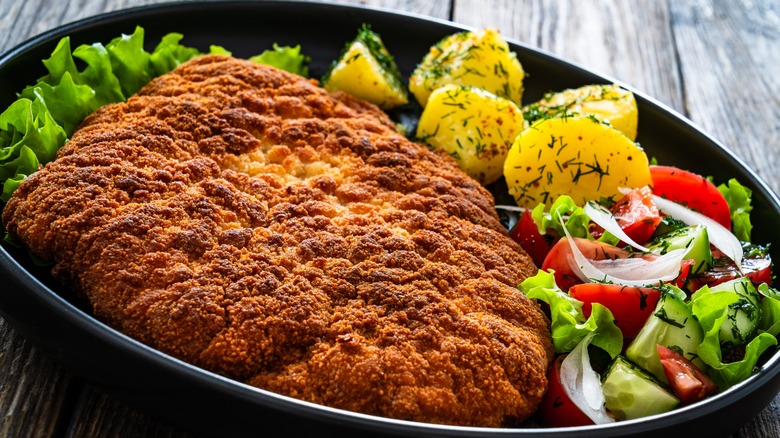 Crispy, crunchy, moist, and tender, pork milanese answers the question "how do I zhuzh up the typical and occasionally boring chicken cutlet without sacrificing flavor?" Fried and breaded chicken cutlets undoubtedly have a place in this world, but when chicken is just not the vibe, thinly-pounded pork chops can easily jump in to add a little more flavor and excitement to this dish, whether it's for a weeknight dinner or a more elevated special occasion meal.