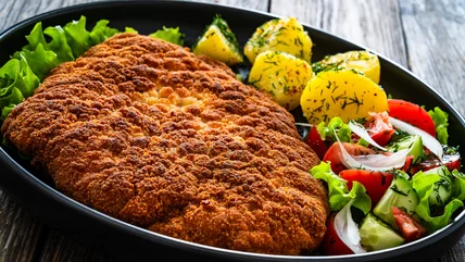 If a leafy salad alongside your pork milanese just isn't enough to make this a complete meal, fear not. To add a little more oomph to your milanese by way of starch while still keeping balance in mind, an herby, acidic French potato salad may be just what you're looking for. Unlike the typical cold, creamy potato salads you may picture at your summer backyard BBQs, warm potatoes are gently tossed with vinegar, olive oil, Dijon mustard, and fresh chopped herbs for a tangy bite that is still able to cut through that salty pork milanese with ease. Pair your delectable pork milanese with a good glass of red wine – something dry with fruity notes and just a little bitterness. And just like that, you've nailed the perfect meal.