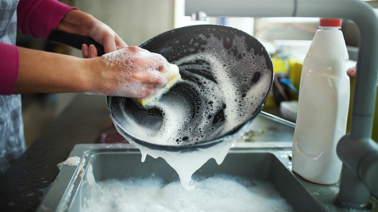 There's a myth that you can't get a good sear on meat using a nonstick frying pan. In reality, you can get a good sear with anything between 350 degrees Fahrenheit and 500 degrees Fahrenheit, which an aluminum skillet can take. The actual concern has more to do with the Teflon nonstick coating, as PTFE degrades at high temperatures over 450 degrees Fahrenheit, causing potential health concerns. Also, if you don't let your pan cool down before washing, thermal shock may lead to rapid expansion and shrinking of the metal base, which can damage the coating. For that reason, it's advised to use nonstick skillets for delicate foods such as fish, eggs, grilled cheese, quesadillas, and pancakes that require 350 degrees Fahrenheit and below. It's also about how, for inexperienced home cooks, not having a nonstick surface to minimize the messes might be too bothersome.
