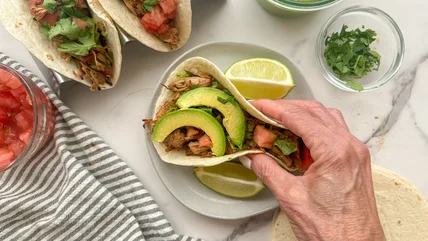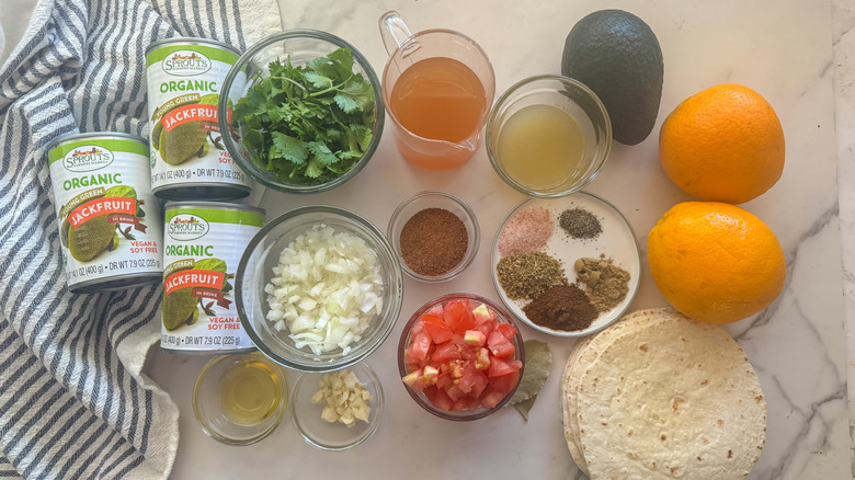 Gather the ingredients for plant-based jackfruit carnitas tacos