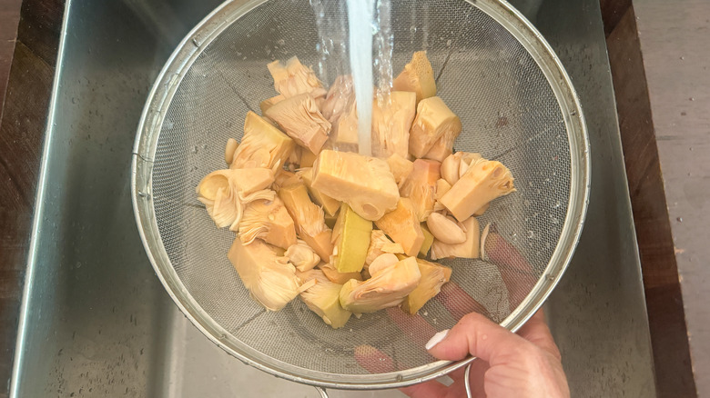 - Remove the jackfruit from the can and rinse it well with cold water