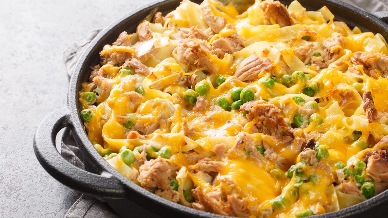 Alfredo sauce is cheesy, bold, and thick, complementing an umami-rich tuna. Chicken is a more well-known choice for an Alfredo sauce pairing, but canned seafood is often the secret weapon behind the most flavorful pasta dishes. Tasting Table staff have argued that some of the best ways to use canned tuna in pasta include butter and cream-based sauces like Alfredo sauce.