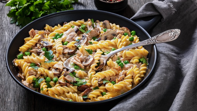 Tuna salad is the obvious choice for canned tuna, using mayo as the creamy condiment to bind tuna with other crunchy aromatic ingredients. But Alfredo sauce is another creamy and flavorful vessel to incorporate canned tuna into a filling, well-rounded meal.