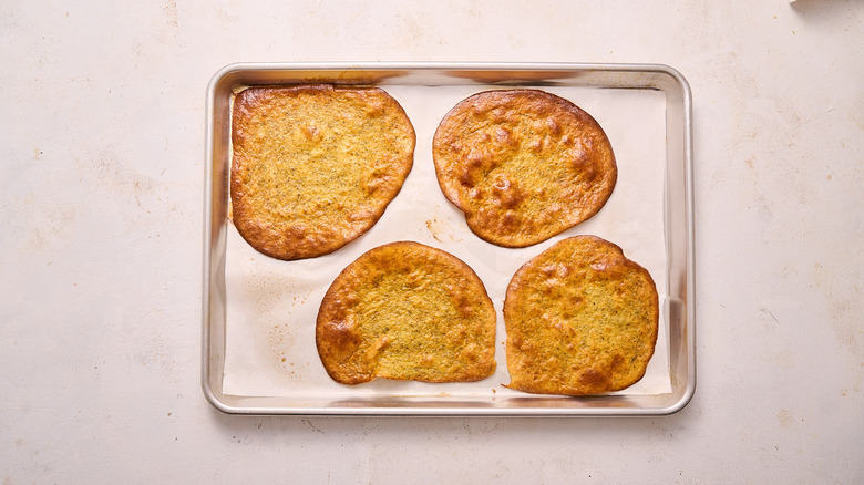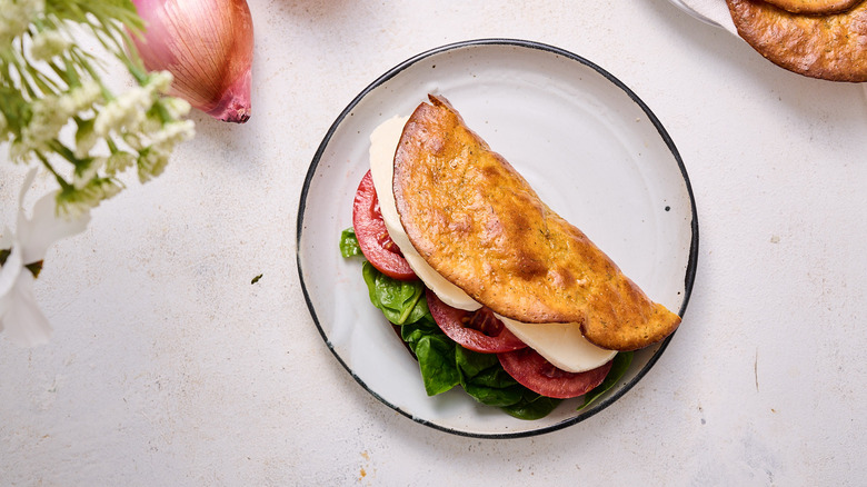One savory way to use cottage cheese is to bake it into a flatbread, another trend that social media scrollers may have stumbled across. It seems like magic — eggs, cottage cheese, and seasonings transforming into bread — but it's not as mysterious as it appears. The "flatbread" is really more of an omelet or frittata, and without the right seasonings, tastes pretty much like eggs, too. The key, as written in this recipe written with developer Michelle McGlinn, is to add herbs and aromatics, then bake until very crispy. Though it may never be true bread, the clever technique helps turn a cheesy, thin frittata into a delicious vessel for sandwich fixings. And when you can't have wheat, like in keto or gluten free diets, a delicious alternative is more than good enough.