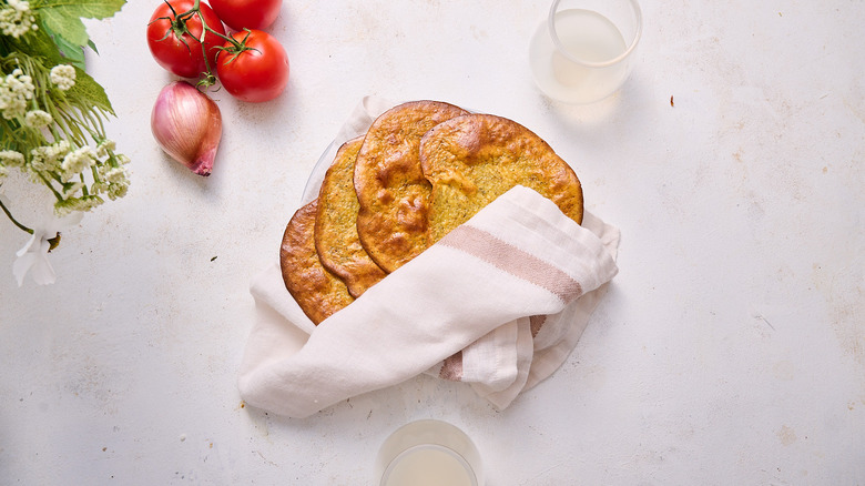 Flatbreads are used in many cultures for many different reasons. Most commonly, you'll find flatbreads used to house ingredients like vegetables and meat that effectively make it into a sandwich. In other instances, the bread might act as a means to scoop stews, soups, or curries out of a serving bowl. This cottage cheese flatbread can be used for all of these dishes and more, such as taco-style.