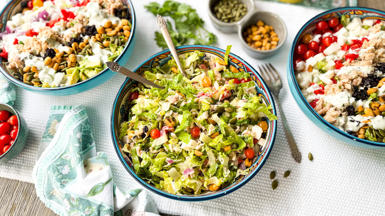 Canned tuna can be used in far more recipes than the creamy salad many of us eat with crackers or on a sandwich. It's an affordable, relatively healthy, and easy-to-find ingredient for more traditional leafy salads too. One thing about tinned tuna, however, is that it's sort of bland on its own, so it needs a bold dressing to pair with your favorite veggies. To help spruce up your salad game, we have a creamy and spicy dressing suggestion for you to try (and you might want to make a double batch).