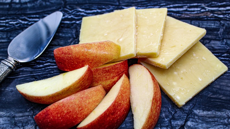 Switching up the type of apple and the variety of cheddar makes it easy to vary the different notes in this fruit-and-cheese combo. A sharp Granny Smith with a vintage cheddar will create a bold pairing that will certainly wake up your taste buds, whereas a milder cheddar with a sweeter apple such as a gala will offer a more mellow flavor. Nikki Trzeciak recommends using a very mature cheddar and being more inventive with the apple accompaniment, suggesting that "aged cheddar paired with apple butter and candied pecans creates complementary flavors for your palate."