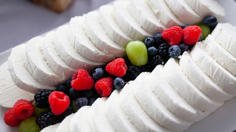Goat cheese has an earthier flavor than cow's milk cheese, and both cheese experts enjoy pairing it with berries. When asked what classic cheese-and-fruit pairings she would recommend, Nikki Trzeciak chose "goat cheese and fresh berries, because of how the sweetness ... balances out the strong notes in those cheeses." Cameron Smith is also a fan, specifying blueberries as his fruit of choice to match creamy goat cheese. "It is always difficult for me to pick out a personal favorite, but something that I have always enjoyed through the years is blueberries and goat's milk cheeses," he said. "I honestly would have it more in a blueberry jam form. But the thing about this is that the goat's milk cheese has this slightly sour tang and this smooth creaminess, and really makes the sweet blueberries pop!"