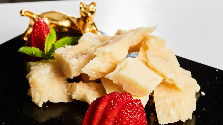 The ultimate sweet-and-salty combination is to pair ultra-umami Parmesan cheese with super-ripe strawberries. "Stella Parmigiano Reggiano with strawberries and balsamic and charred bread gives you a nice tart-but-fruity taste to create that savory-and-sweet combination," suggests Trzeciak.