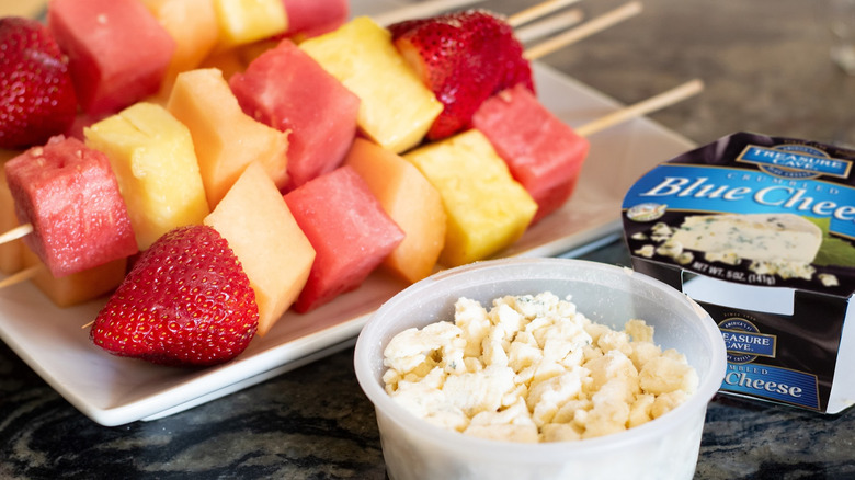 When asked what needs to be considered when pairing fruits with cheese, Nikki Trzeciak answered, "Reckless abandon — have fun and try everything! Most cheeses are pungent with some sour and/or bitter notes, and the sweet in fruit helps balance those strong notes and brings everything into balance." In the spirit of trying new and unusual combinations, give one of Trzeciak's favorite combinations a go: Treasure Cave blue cheese and watermelon.