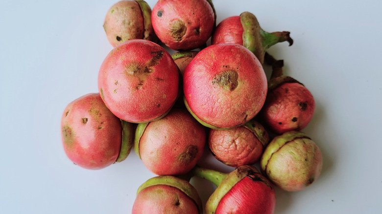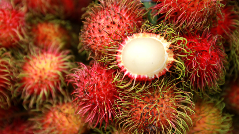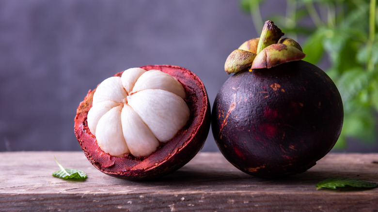 Mangosteens are about the size of tangerines with dark and hard skin. Inside is its sweet, floral, and soft-tasting flesh. When ripe, no fruit compares to its balance of sweet acidity — many liken it to a combination of orange, lychee, and peach. It's been called the "queen" of tropical fruits. But, fitting to its royal status, it's hard to get to. The fruit has been forbidden from being imported into the U.S. from its homeland of Southeast Asia. Although small shipments do come from Mexico, mangosteen doesn't ripen after being harvested and is very perishable, which is the reason why they're so expensive, too.