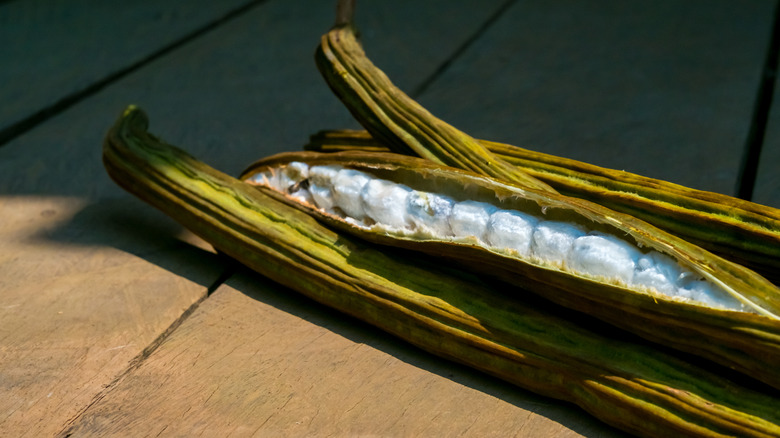 Ice cream beans, scientifically known as Inga edulis, come from South America. The fruits look and taste very much like how they sound. The large, green beans contain white-yellow pods that taste like creamy vanilla and cinnamon.