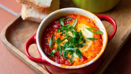 If you want to make an even simpler dish that doesn't involve chopping onions or garlic for flavor depth, we have other ways to elevate the flavor of your canned tomato soup. While the soup is simmering, add some herbs like oregano or enrich the soup with milk or heavy cream. This is not the typical flavor profile associated with shakshuka, but it allows you to incorporate your favorite add-ins. Or maybe you want to steer this combo in the direction of eggs in purgatory, which differs from shakshuka, by the way.