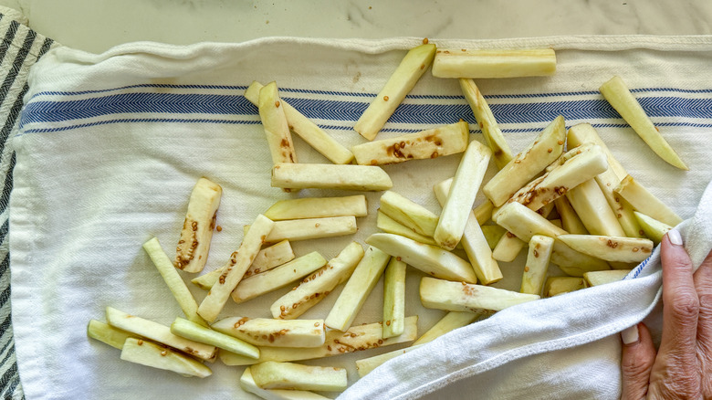 Lay the eggplant on a clean dish towel to dry thoroughly.