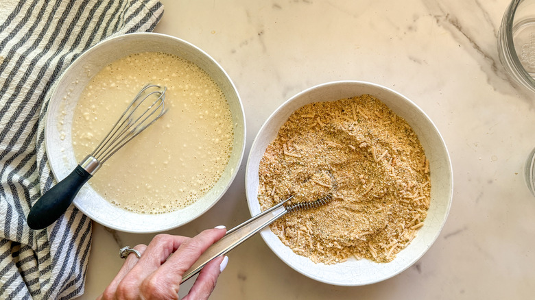 - In another bowl combine the breadcrumbs, Parmesan, 1 teaspoon garlic powder, onion powder, ½ teaspoon salt, pepper, and smoked paprika.