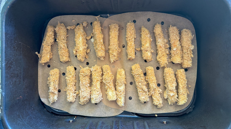 - Place the eggplant into the air fryer and cook for 20 minutes at 400 F. You may have to work in batches.