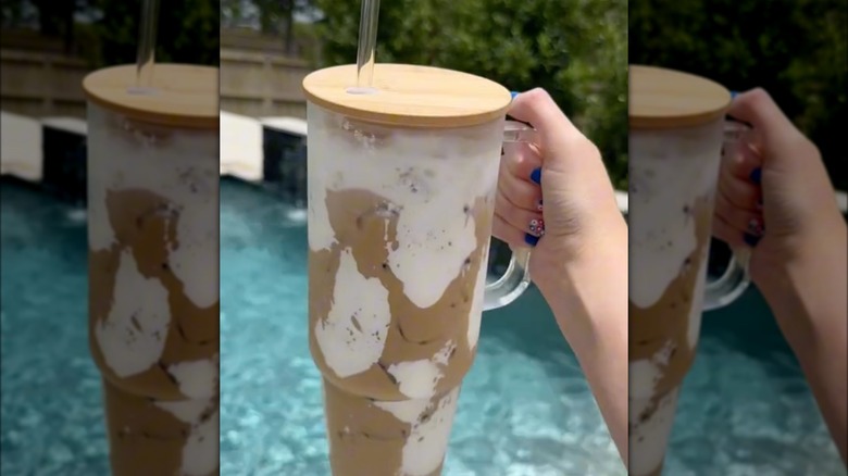 The viral fluffy Coke that only needs three ingredients has been blowing up the Internet. However, it's time for it to step aside. Instead of using soda to make a fluffy drink, we're going to use coffee, which will be the most decadent way to get your next caffeine buzz. You will also only need about three ingredients to make a fluffy coffee — marshmallow fluff or creme, iced coffee or cold brew, and dairy or plant-based milk.