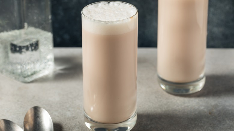 Add a shot of bourbon to the classic egg cream and give a childhood favorite a grown-up upgrade. If you've never tried one before, egg creams are a staple of the Jewish-American New York deli scene, a pillar of the Lower East Side soda fountains of yore, and beloved by today's foodies. Chocolate or vanilla syrup is topped with chilled milk or cream in a tall glass, whipped vigorously until frothy, then topped with ice-cold club soda or seltzer. There's no actual egg, but there is a luscious, ultra-foamy head and refreshingly fizzy sweetness that makes this treat a cross between a beverage and a dessert. For a non-dairy version, opt for creamy full-fat oat milk.