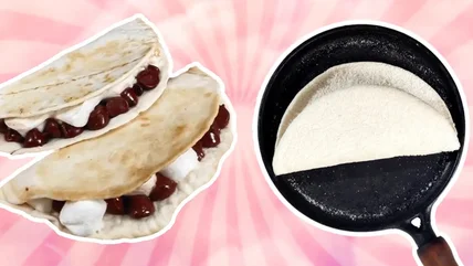 For another way to integrate some fruitiness, you can fill the taco with a homemade strawberry compote, along with either ice cream or whipped cream. Or go the s'mores route and fill the tacos with marshmallows and chocolate. Be sure to take advantage of your trusty skillet and melt the 'mallow and chocolate right on top of the tortilla.