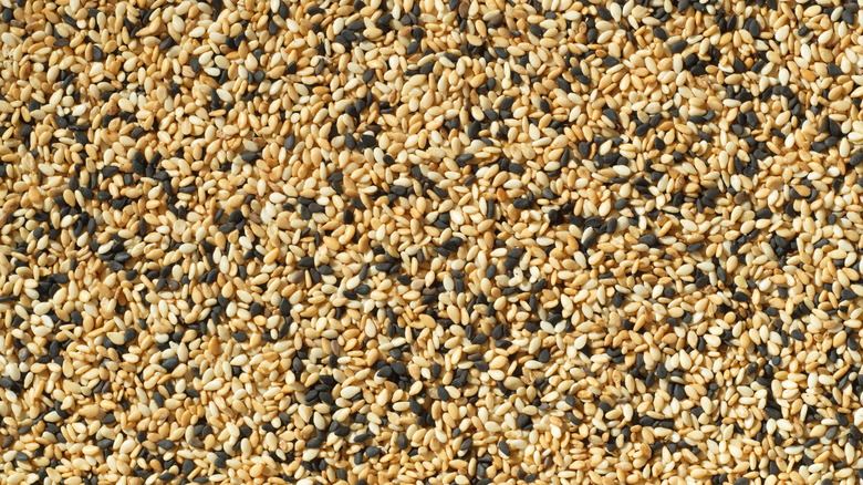 If you're ready to start topping your chocolate chip cookies with sesame seeds, first, decide on a chocolate chip recipe, like our delicious and easy brown butter chocolate chip cookies recipe. Add toasted sesame seeds to a shallow bowl and roll the cookie dough balls in the bowl of sesame seeds to coat them thoroughly. Then, bake the cookies as you normally would. Your sesame seeds can be white or black or a mix of both. The flavor difference between the white and black sesame seeds is subtle, so it's more about what cookie aesthetic you're going after.