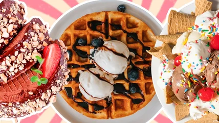 You can enjoy your ice cream waffle as is, of course. But if you're craving more texture and flavor, dip the sides in toppings such as crushed nuts, sprinkles, and mini chocolate chips. For a breakfast-inspired touch, consider spreading a layer of jam on the waffles before adding any ice cream, or drizzling maple syrup on top.