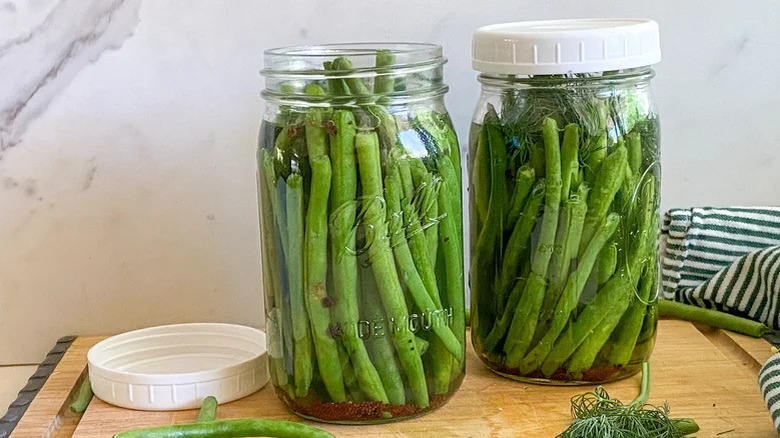 Put those cucumbers aside and leave the radishes in the fridge, these green beans are your new favorite pickled snack. That name says most of it, as dill and vinegar flavors sturdy green beans, which hold up excellently to pickling while still retaining a satisfying crunch. Some peppercorns, mustard seeds, and garlic add a little more pop, but this is also a recipe that is easily customizable to your favorite pickle flavors. Boil the pickling brine, pour over some trimmed green beans in a jar, seal, sit for two days, and start eating.