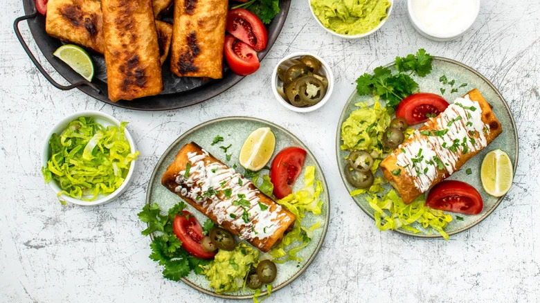 Chimichangas may be a takeout favorite, but they aren't hard to make at home and, this way, you can fill them with a creative veggie and bean mixture that turns them into the burrito equivalent of southwestern egg rolls. A combo of corn, bell pepper, tomatoes, beans, rice, and onion comes together in minutes with a little cumin, smoked paprika, oregano, and cayenne pepper for a mix of Mexican flavors. Rolled in store-bought burrito tortillas with shredded cheese, these chimichangas can be fried in a shallow pan of oil without much mess or fuss, but they can also be baked or air-fried for a crunch that's a little lighter on the fat.
